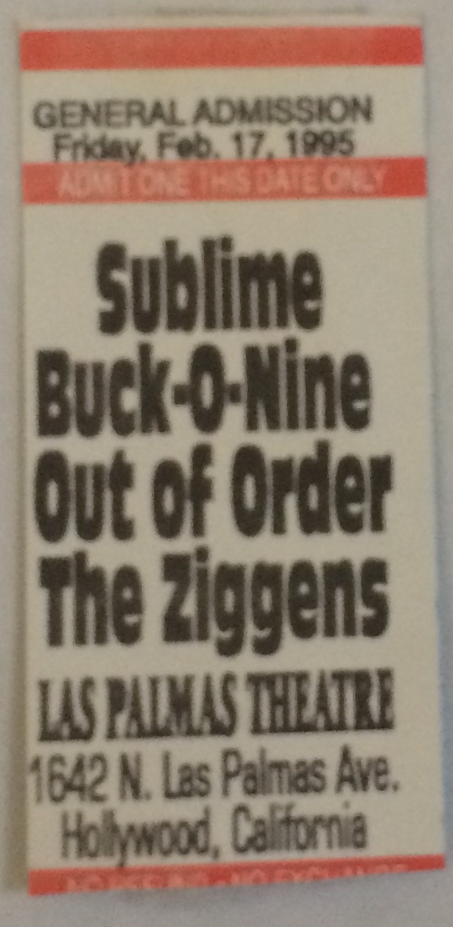So..what I get asked frequently is what was it like hanging with Sublime back in the day? Well, the first time I saw them was at The Pub at CSULB. Mike Happoldt who was in the Ziggens at the time ( and remains a close friend and loyal confidant to this day) lined us up to play a set before or after his new friends called Sublime. At the show, I remember thinking “hmmm, white boy reggae”..not sure I like it. That day all their songs kinda sounded the same to me but I noticed more than anything how handsome their singer was and that they might do well just based on that. Especially since there were more than a few Long Beach hippie girls with their stomach’s exposed with belly rings dancing in front of the stage. Bradley told me some months later that he really didn’t even notice our set so I guess musically neither side was doing much for the other. Boy did that change. About 2 weeks later Bradley approached me wearing a fanny pack and told me “ In this fanny pack is your cassette. I keep it here so no one can steal it.” He said “My favorite of yours is “ All the fun that we missed”. I was embarrassed because my singing on that initial demo cassette was really wimpy sounding and tentative. ( a problem that would never quite go away, much to my chagrin). On the flip side, the Sublime cassette that I had in MY possession was gritty and raw. I had begun to know the Sublime songs individually and they DID NOT all sound the same. I was a fan!