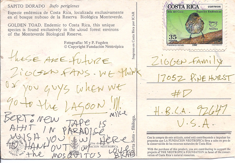 The next day we drove to the venue and a guy in the load in area told us the show was cancelled. We asked why and he said “ Because the singer of Sublime died last night. I said “that’s not possible! We were with him last night! He said “ Sorry, dude, I don’t know what to tell you…” We wept and I cursed drugs as we made our way back to Huntington Beach in silence. After Brads memorial service the Ziggens had a gig at Knotts Berry Farm that night and we played bad fish for the first time. Bad fish is the song Bradley fashioned after listening to my song “All the Fun that we Missed”. The performance of our unrehearsed live version of bad fish is here on this website. I’d like to thank Brad, Bud, eric and especially Mike (Miguel) for letting a couple nerds like myself , brad Conyers, Jon Poutney and Dickie Little tag along.